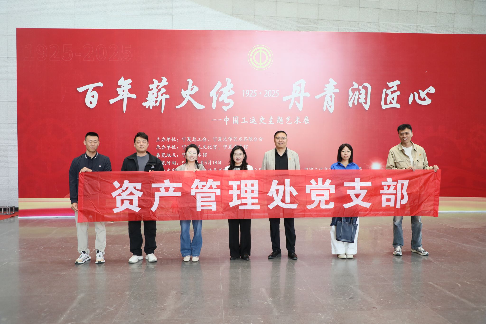 为深化党史学习教育,传承红色基因,涵养新时代党员的匠心精神,2025年5月14日上午,资产管理处党支部联合宣传统战部、工会等部门,共同开展"百年薪火传 丹青润匠心"主题党日活动,组织党员赴宁夏美术馆开展沉浸式学习实践。